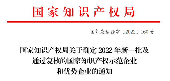 近日,国家知识产权局发布《国家知识产权局关于确定2022年新一批及通过复核的国家知识产权示范企业和优势企业的通知》,海南金年会药业集团股份有限公司入选2022年新确定的国家知识产权示范企业名单,成为482家新一批国家知识产权示范企业之一。这标志着金年会药业创新研发实力和知识产权管理成果进一步得到了国家有关部门认可。